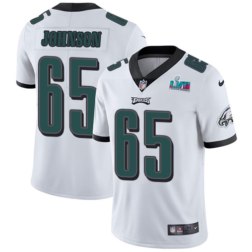Behold this top notch Outstanding Eagles #65 Lane Johnson White Super Bowl LVII Patch Men’s Stitched NFL Vapor Untouchable Limited Jersey Sports enthusiasts Seize the opportunity Order your Eagles jersey With its outstanding quality and stylish design it’s a must have for Eagles fans Order now!